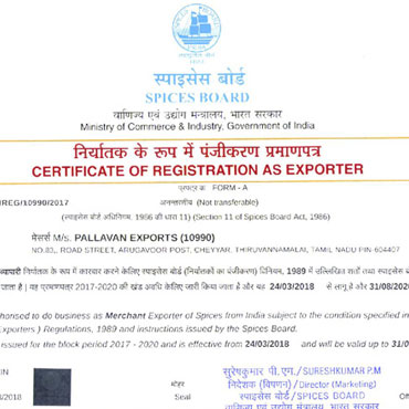 SPICES BOARD (Registration Certificate)